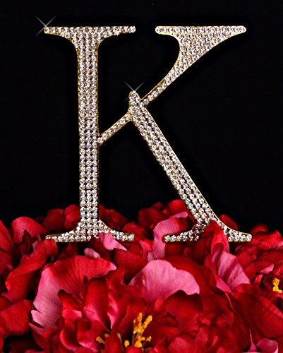 Unik Occasions Collection Crystal Rhinestone Letter-K Wedding Cake Topper, Small, Gold