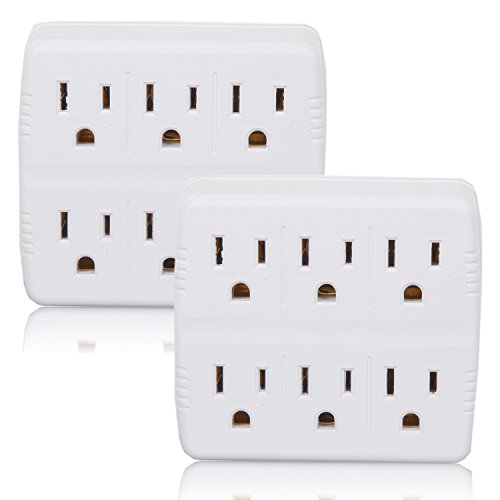 Maxxima 6 Grounded Outlet Wall Plug Adaptor (Pack of 2)