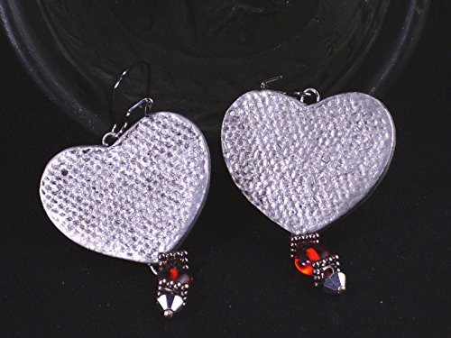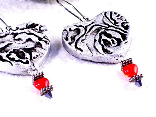 -. Title : 1.75" Abstract Rose Heart Statement Earrings Silvertone Botanical Dangles Handmade Abstract Rambling Rose Flowers Romantic Heart