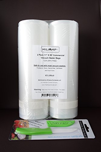 BPA FREE-SAVE MONEY $$$ - Much longer than the leading vacuum saver bags - Never eat freezer burn meat – Lock the freshness in the vegetable and meat - FREE Ceramic Knife with each order.