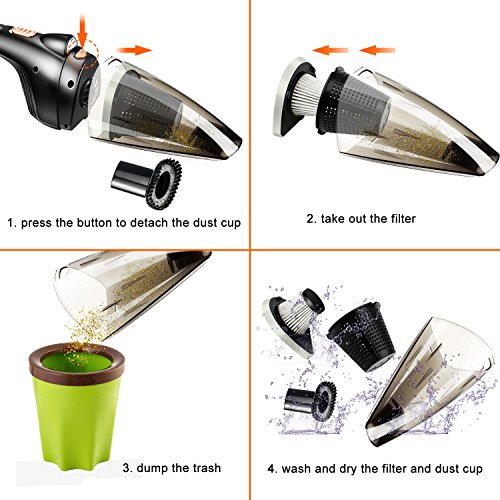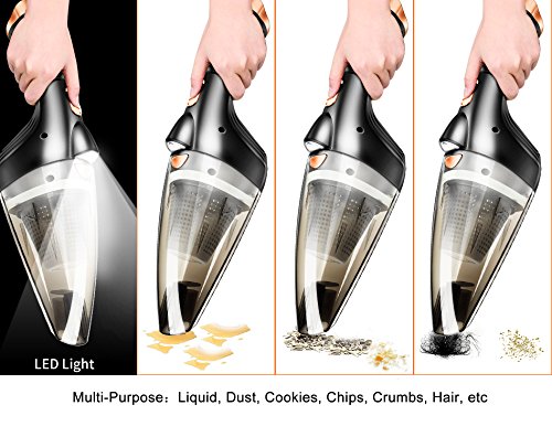 【Multifunctional Car Vacuum】-- Welltop car vacuum is designed for dry and wet use. The powerful suction efficiently sucks up cookies and chips, crumbs and cereal, hair and dust particle. Not a single crumb left behind. No worry about messy kids snacking in the car.