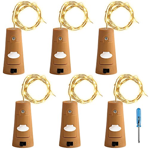 6 Pcs Cork Lights with Screwdriver, AFUNTA Bottle Lights Fairy String LED Lights, 30 Inches Copper Wire 15 LED Bulbs for Party Wedding Concert Festival Christmas Tree Decoration - Warm White