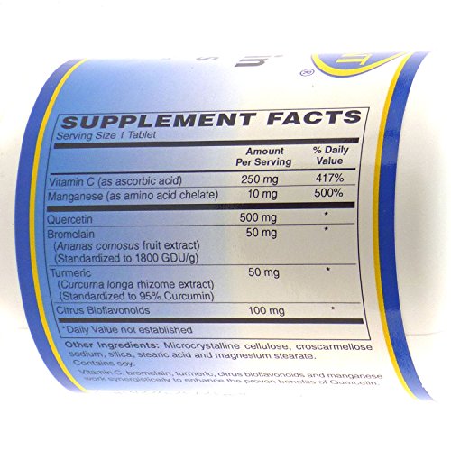 Quercetin is a naturally occurring bioflavonoid that supports healthy histamine levels, thus helping to sustain proper immune system function. Quercetin provides support for the balanced immune system responses important for the management of occasional seasonal discomfort. Adults take one (1) tablet, two (2) times daily with meals or as directed by a health care professional. These statements have not been evaluated by the Food and Drug Administration. This product is not intended to diagnose, treat, cure, or prevent any disease.Feature