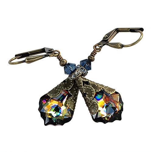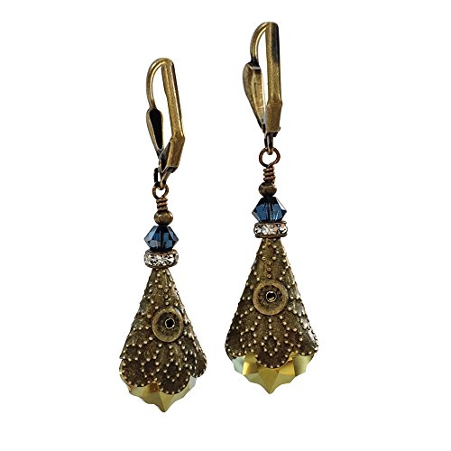 -. Title : HisJewelsCreations Peacock Eye Crystal Baroque Vintage Inspired Earrings