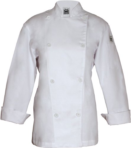 Chef Revival LJ027 Poly Cotton Ladies Knife and Steel Long Sleeve Jacket with White Chef Logo Button, 5X-Large, White