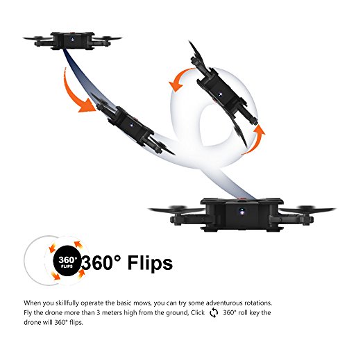 Hobbylane Folding Drone with FPV Camera Live Video, Altitude Hold Flexible Foldable Pocket Quadcopter with Remote Controller, Track Controlled Mode Gravity Sensor Helicopter Toys for Adults (Black)
