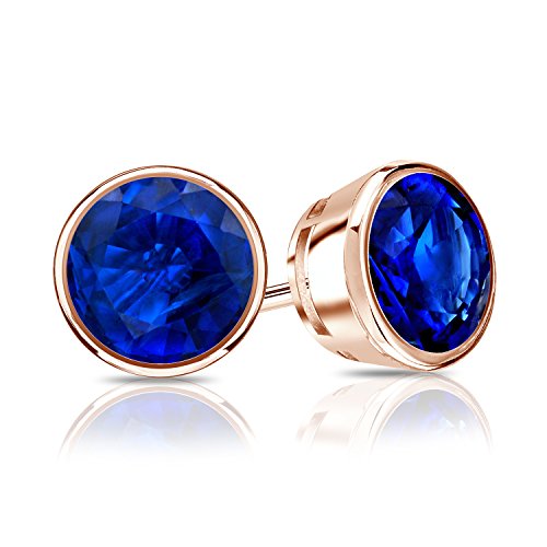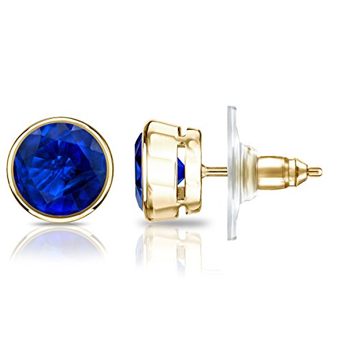 -. Title : 14k Gold Bezel Round Blue Sapphire Stud Earrings (1/3 cttw) Secure Lock Back Disc