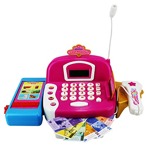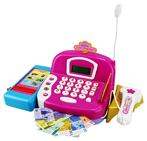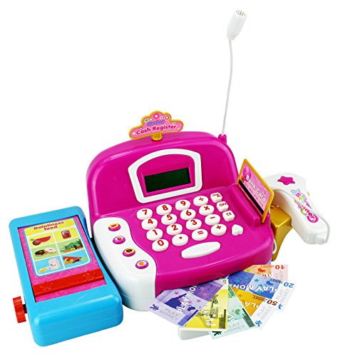 -. Title : HYL Fun Educational Pretend Play Battery Operated Toy Cash Register w/ Working Scanning Action, Microphone, Money and Credit Card, Groceries