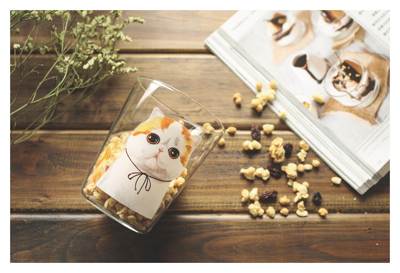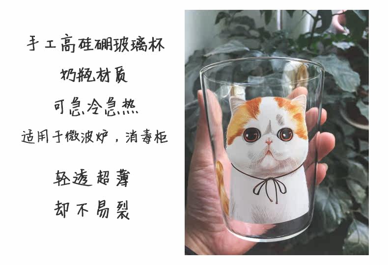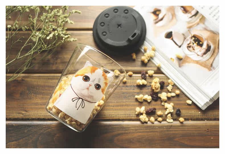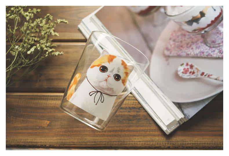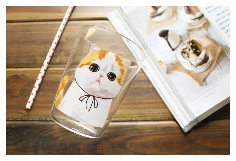 创意卡通早餐杯萌宠加菲猫系列狗狗玻璃杯子办公室耐热咖啡牛奶杯