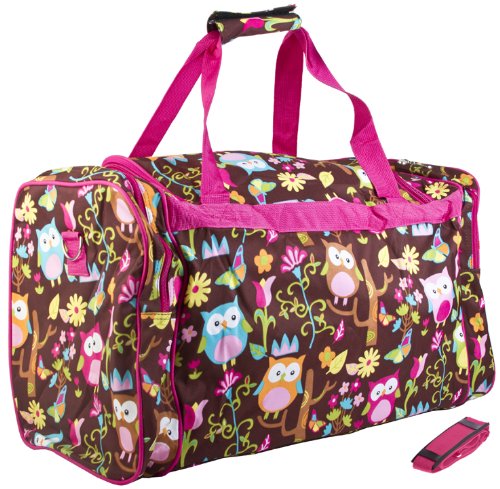 -. Title : Colorful Owl Carry On Travel Duffle Bag with Pink Trim - 23-inch