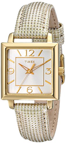 -. Title : Timex Women's T2P379 Elevated Classics Gold-Tone Square Watch with Metallic Leather Band