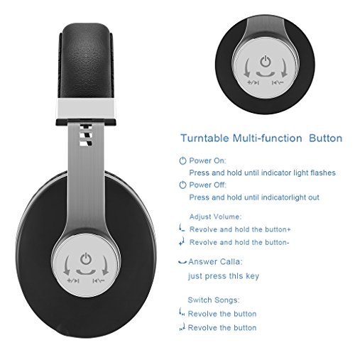 Beemax Bluetooth Headphones Wireless Headset Noise Cancelling On Ear Over Head Stereo with Turntable Multi-Function Button Gaming Headset V4.0 with Mic for Cell Phone, Laptop, PC (Black)