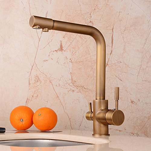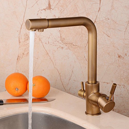 Hiendure Antique Brass Purified Water Outlet Kitchen Sink Faucet with Swivel Spout