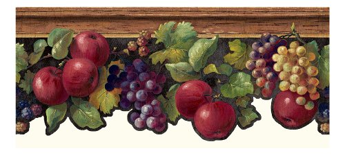 York Wallcoverings KH7131B Kitchen and Bath Fruit and Ivy Border, Black/Brown/Red/Purple/Yellow/Green