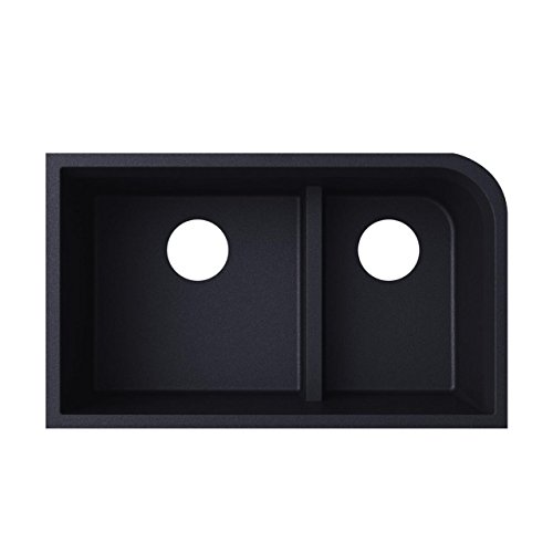 Swanstone QULD-3322.077, Granite Undermount Double Bowl Kitchen Sink, 32-Inch x 21-Inch, (Nero Finish)
