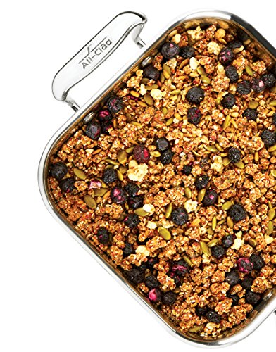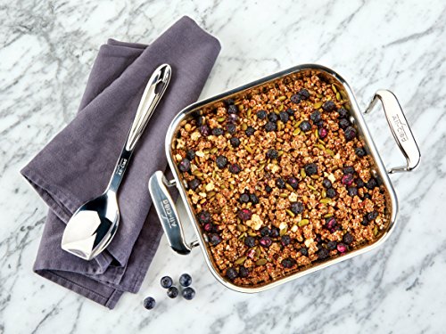 Ideal for, casseroles, cobblers and more, the All-Clad, E901946, 8 in. Covered square baker makes a useful addition to any kitchen. The pan provides upright handles for a secure hold from oven to table, along with gently rounded edges and corners for easily removing baked food with a spatula. Even more, the baker's fitted BPA-free plastic lid makes transport to potlucks and holiday parties hassle-free-plus allows for refrigerating leftovers right in the pan. Forged from heavy-gauge stainless steel, the All-Clad square baker distributes heat quickly and evenly and promotes pure-tasting results thanks to its non-reactive, highly polished surface. Experience All-Clad renowned quality and craftsmanship with the All-Clad 8 in. Covered square baker.Feature