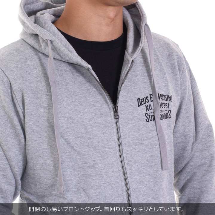 レギュラーフィットシルエットに落ち着いたプリントが上品なジップアップパーカーです。サーフテイストを落とし込んだシンプルなプリントにさりげなく裾元のピスネームがアクセント◎320gm裏起毛スウェットで保温性も十分に、エンザイムウォッシュ加工を施した風合いも魅力的です。