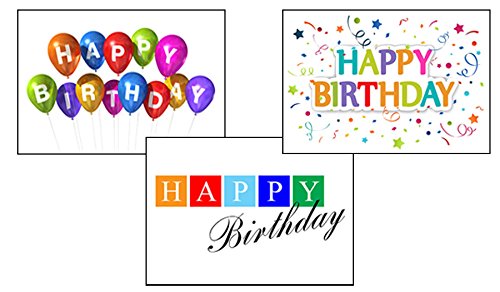 Birthday Greeting Card Assortment-VP1601. Business Greeting Cards Featuring 3 Different Business Birthday Cards. Box Set Has 25 Greeting Cards and 26 Sky Blue, Orange or Lime Green Colored Envelopes.