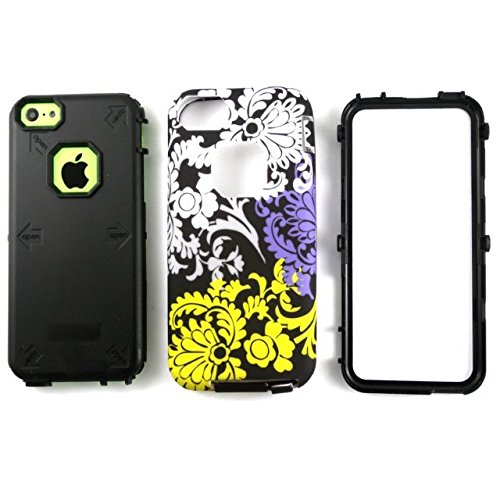 iPhone 5C Case, Nccypo Fashion Eye-catching Colorful Flower Triple Layer Combo Hard Soft High Impact Hybrid Durable Back Case Slim Cover with Stylus,Screen Protector and Cleaning Cloth Compatible for Apple iPhone 5C(Black)
