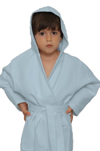 Waffle Cloth Hooded Children's Robes are woven using 100% natural cotton. Child's bathrobes are made of waffle textured fabric inside and outside. These child robes are designed for maximum comfort and durability. Genuine Kid Spa Robes below wholesale price.