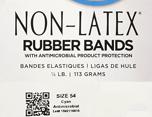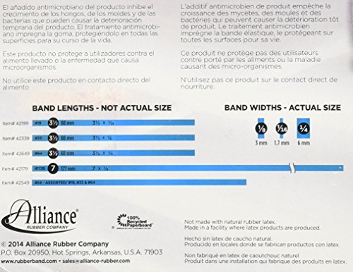 Alliance Rubber 42549 #54 Assorted Non-Latex Antimicrobial Rubber Bands, 1/4 lb box contains #19, #33, #64 elastics (3 1/2" x 1/16", 3 1/2" x 1/8", 3 1/2" x 1/8", Cyan Blue)