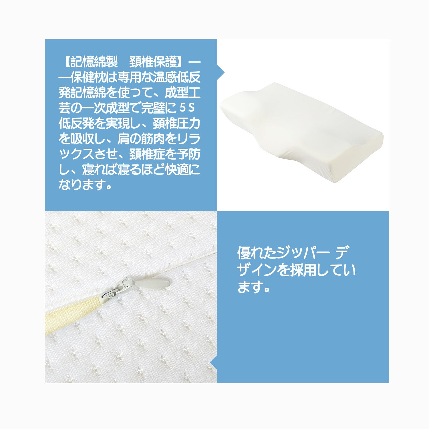 The health pillow realized 5S low rebound perfectly with the primary molding of molding craft using the exclusive warming feeling low rebound memory cotton, absorbing the cervical spine pressure, relaxing the shoulder muscles, preventing cervical spondylosis, sleeping