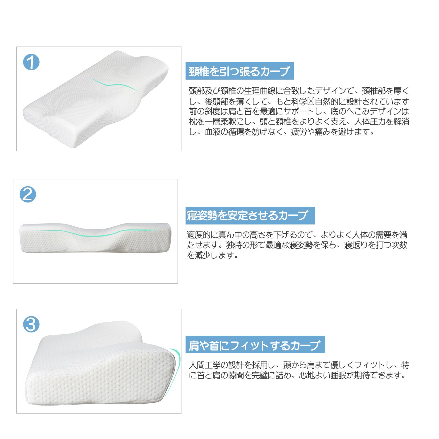 Designed to match the physiological curves of the head and cervical vertebrae, the cervical spine is thickened, the back of the head is thinned, and it is originally designed for science and nature. The previous slope optimally supports the shoulder and neck,