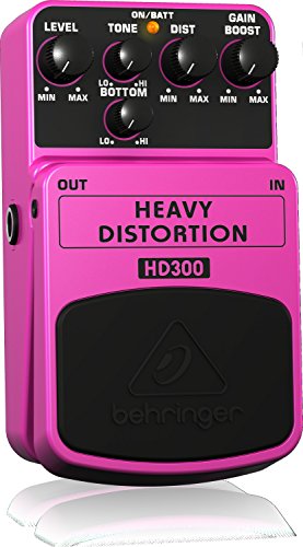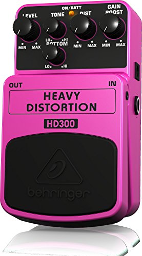 -. Binding : Electronics -. Brand : Behringer -. Color : Pink -. EAN : 8001691624645 -. Feature : Pushes distortion to the extreme by producing crushing, bottom-heavy distortion for modern metal and hard rock / This BEHRINGER product has been designed to compete head to head with leading products on the market / Dual distortion with gain boost circuitry to give you super thick and heavy distortion with brutal low-end punch and endless sustain / Dedicated Gain Boost, Distortion, Tone, Bottom and Level controls for awesome sound shaping / Status LED for effect on/off and battery check -. IsAutographed : 0 -. IsMemorabilia : 0 -. Label : Behringer USA -. Manufacturer : Behringer USA -. Model : HD300 -. MPN : HD300 -. NumberOfItems : 1 -. PackageQuantity : 1 -. PartNumber : HD300 -. ProductGroup : Musical Instruments -. ProductTypeName : SOUND_AND_RECORDING_EQUIPMENT -. PublicationDate : 2008-03-01 -. Publisher : Behringer USA -. ReleaseDate : 2008-03-01 -. Studio : Behringer USA -. Title : BEHRINGER HEAVY DISTORTION HD300 -. UPC : 736211843777 -. Warranty : Please refer to http://www.music-group.com/warranty.aspx
