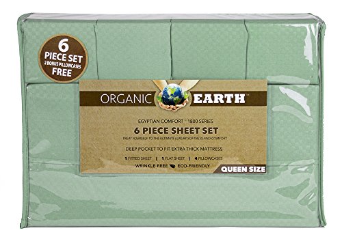 Organic Earth Egyptian Comfort 1800 Series Eco-Friendly 6 Piece Sheet Set, Queen, Aquamarine