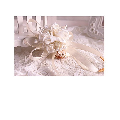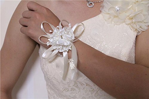 Patty Both Girl Bridesmaid Wedding Wrist Corsage Party Prom Hand Flower Decor Pack of 2 (white)