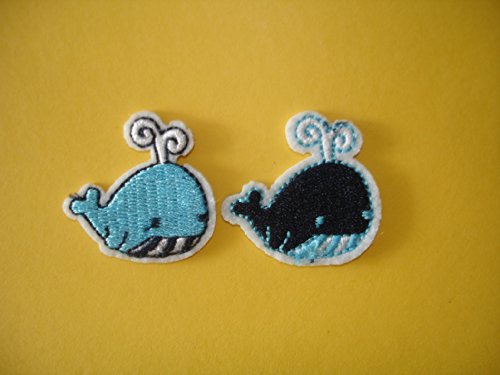 2 small pieces WHALE Iron On Patch Applique Embroidered Motif Fabric Decal 1 x 1 inches (2.5 x 2.5 cm)