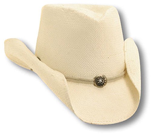 Product Description Soft Toyo Western Shaped Hat with Cotton Chin Cord and Concho Bead. Show your cowboy spirit with this attractive straw hat! The brim is shapeable, to add your individual style to this already distinctive hat. 0