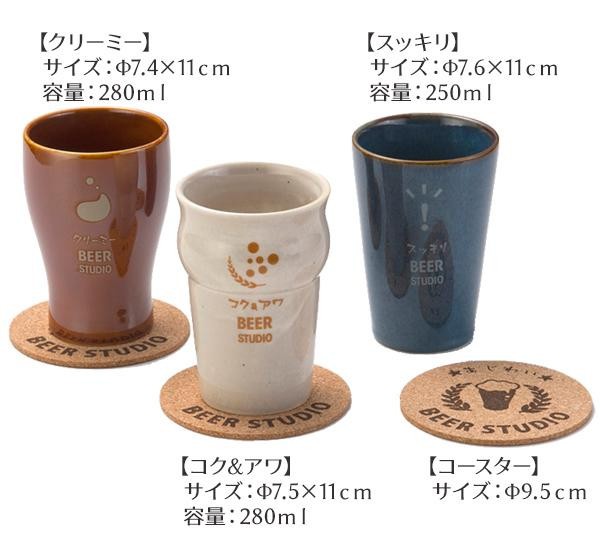 ビールを味わうために生まれたビアカップ。形によりビールの「味わい」が違うから、カップをかえての飲み比べもおすすめです。 製造国:中国 素材・材質:ビアカップ:磁器コースター:コルク 仕様:電子レンジ・食洗機:可 ※サプライヤー直送品 ご注文後5~6営業日後の出荷となります【商品名】BEER STUDIO ビアースタジオ 味わいカップセット BE-2052A