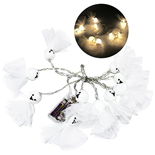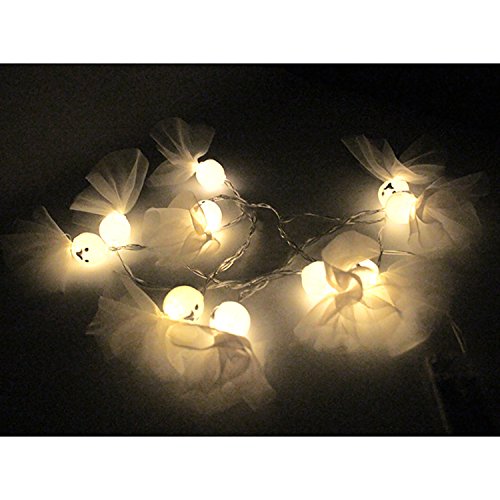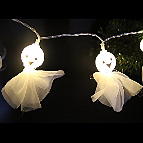 -. Feature : A essential thing for you to decorate your Halloween Party - Decorate these shiny Ghost String LED Lights in your home or garden, and immediately can make a Halloween atmosphere. / Reasonable LED spacing and length - There are three Length for you to choose. 1.5 meter/5 ft and 10 LEDs; 2 meter/6.56 ft and 20 LEDs; 3 meter/9.84 ft and 30 LEDs. / Easy and safe to use - Very flexible to place this light everywhere(indoor/outdoor). Just in common use 2 x AA battery(Batteries not include). / Eye protection - The set of String Lights is Warm White. It can not only be a beautiful decoration for Halloween, but also can good protect your eyes, if you are in the dark for a long time. / Not Only for Halloween - Don't worry that you just use once at Halloween after throwing. In many cases it can be used to decorate. For example for Christmas Parties, Cosplay, New Year etc. Because it is so cute!