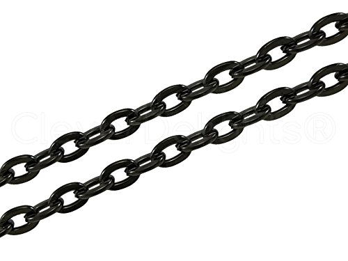 CleverDelights Rolo Chain Roll - 30 Feet - Dark Black Color - 3x4mm Link - Bulk Oval Chain Spool