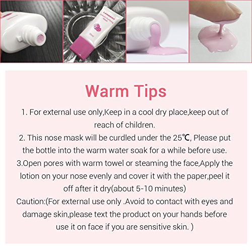 -. Feature : ★New technology Strawberry blackhead remover peel off mask,remove blackheads,white heads ,acne ,shrink pores .Deep cleansing and smooth skin. / ★More powerful on remove more blackheads and deeply cleansing than normal black mask. / ★Fast dry and easy to peel off:Just need 5-10 minutes to dry ,easy to aplly and tear off without any harm. / ★Ingredients and effect: Strawberry Extract,Portulaca oleracea,Hyaluronic acid,Aloe Extract.Deep cleansing ,blackhead removal,blemish remover ,pore minimizer. / ★Notice:This nose mask will be curdled under the 75℉ ,please put the bottle into the warm water soak for a whlie before use.For external use only .Avoid to contact with eyes and damage skin,please text the product on your hands before use it on face if you are sensitive skin.