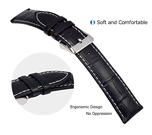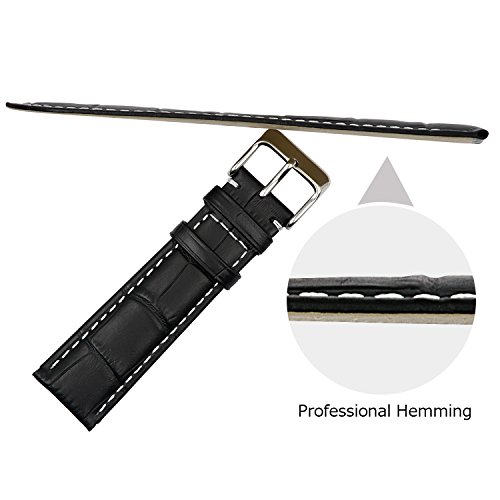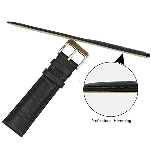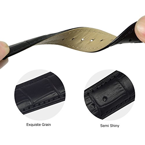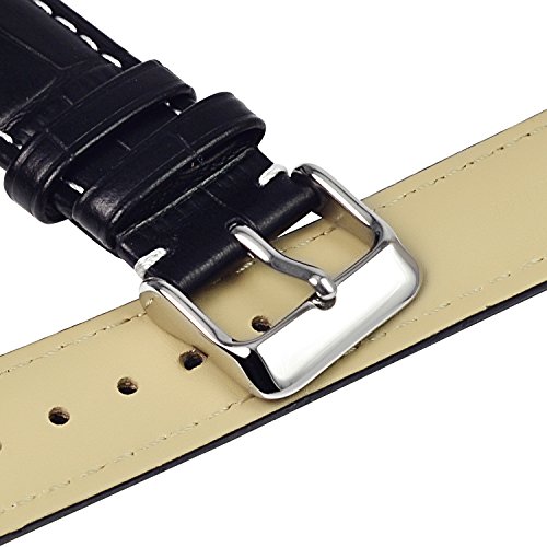 -. Title : TStrap Genuine Leather Watch Band 19mm Black Military Watch Strap Bracelet w/ Steel Watch Clasp Buckle