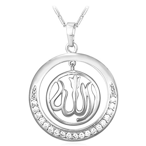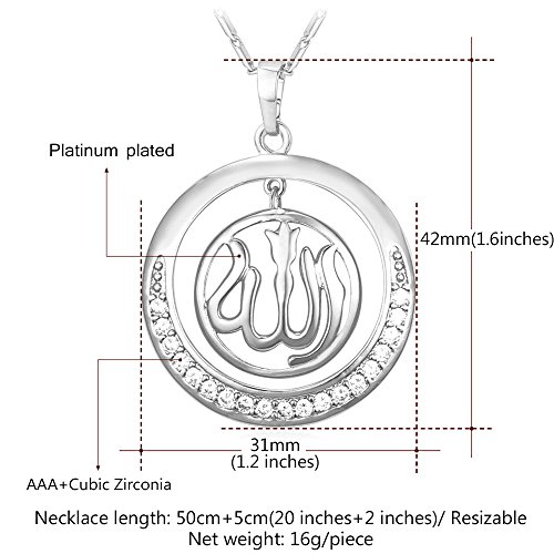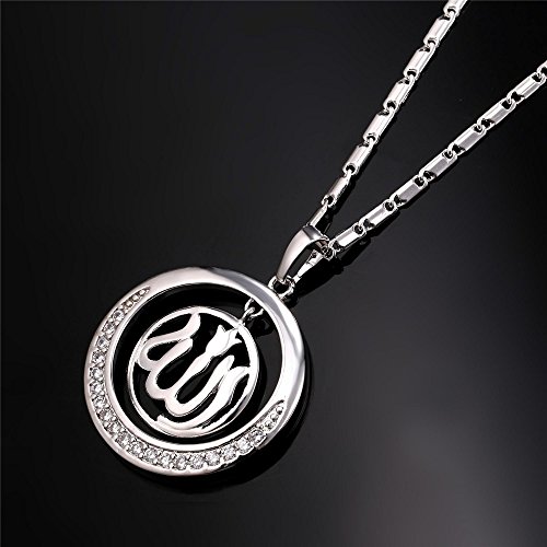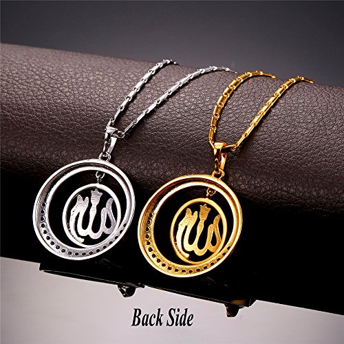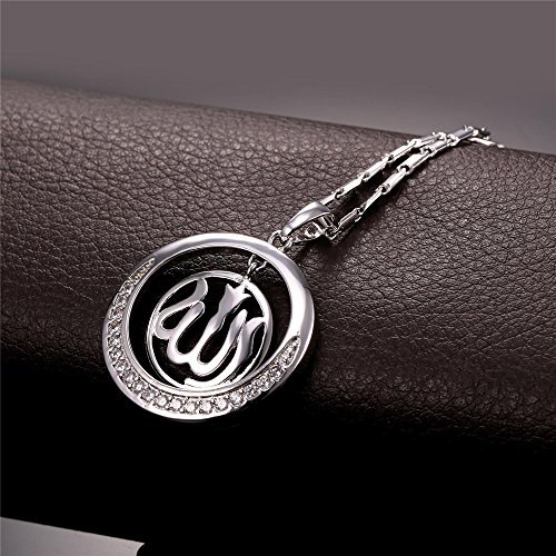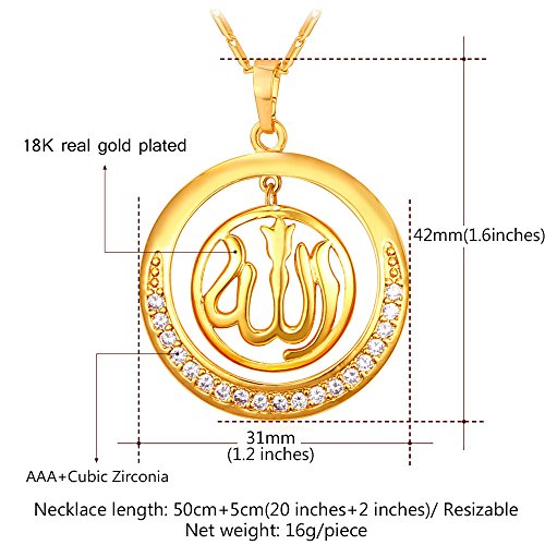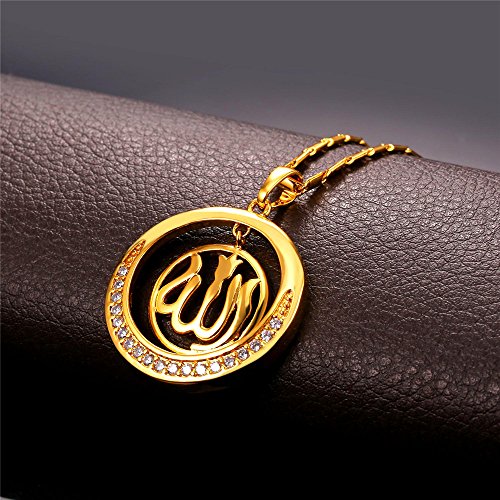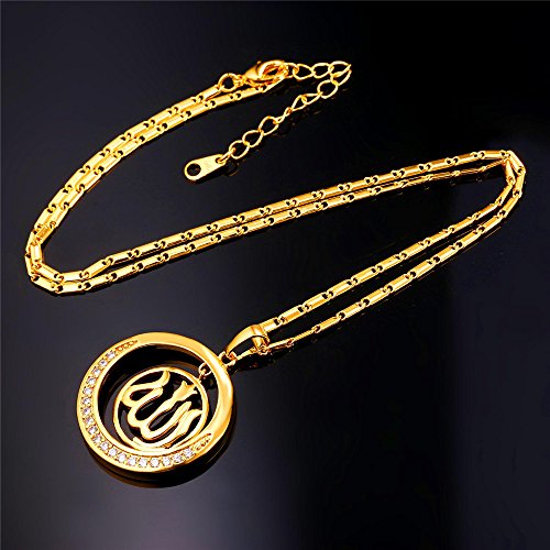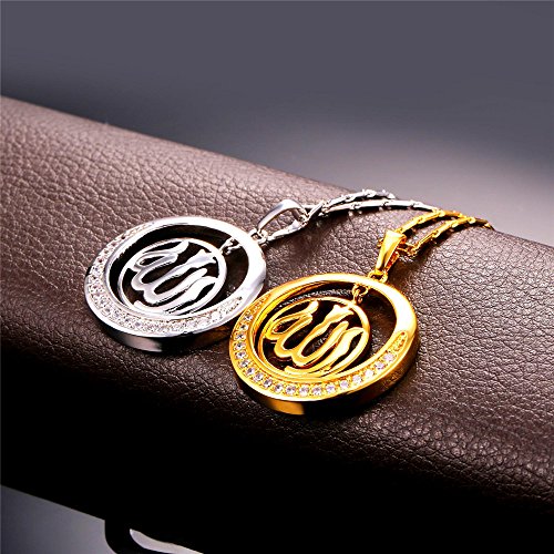 -. Title : Round Allah Pendant Necklace 18K Gold Plated/Platinum Plated Muslim Jewelry By U7