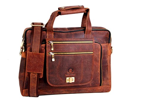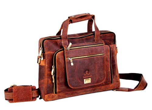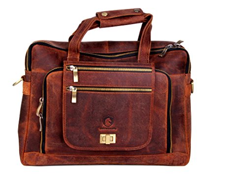 -. Title : Vintage Genuine Buffalo Leather Laptop Briefcase messenger satchel bag