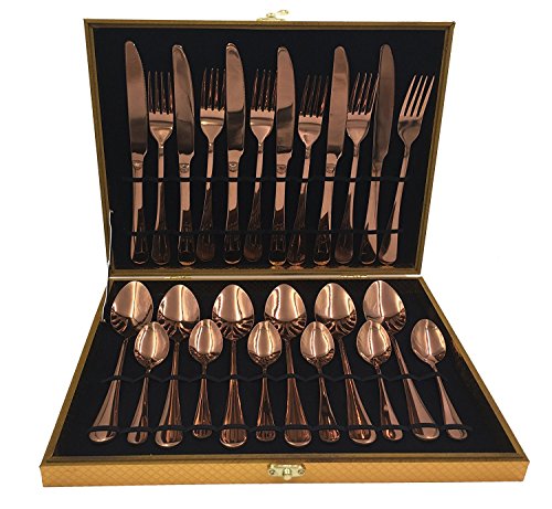 KCHAIN Stainless Steel Gold Flatware Set with Case (24PCS rose gold)