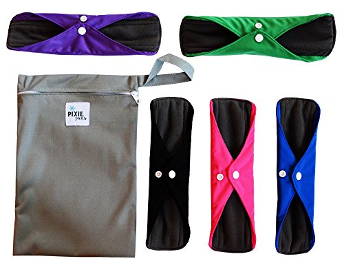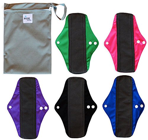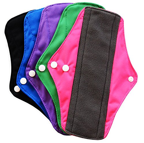 CHARCOAL LAYER is super absorbent, naturally neutralizes odors and is hypoallergenic making it perfect for sensitive skin. The dark color of the charcoal fabric is also forgiving of stains giving you one less thing to worry about. REGULAR FLOW for overnight or all day use making it the ideal companion for your reusable menstrual cup. SAVE HUNDREDS of dollars by switching to reusable washable cloth menstrual pads. Within 2 months they will pay for themselves and you will no longer need to purchase disposable tampons or panty liners which will end up in a landfill after a single use. ECO FRIENDLY 6 PACK - The sustainable, smart choice for eco conscious women. FEEL CONFIDENT knowing that the waterproof outer will protect you from any leaks and spills. Feel comfortable with the ultra soft, charcoal infused inner fabric layer against your skin. Heart Felt reusable overnight cloth menstrual pads are also perfect as period panties, post partum maxi pads or washable cloth incontinence pads for women. FEEL GOOD saving money and reducing landfill waste. Typically 22 disposable sanitary pads or tampons are used every month! Over a lifetime that is a HUGE saving by simply investing in reusable, washable cloth menstrual pads. SWITCH TODAY and never look back. 100% Satisfaction guarantee if you are not completely happy with your purchase. These reusable reusable long panty liners are the perfect alternative to disposable sanitary napkins and panty liners with wings.Feature
