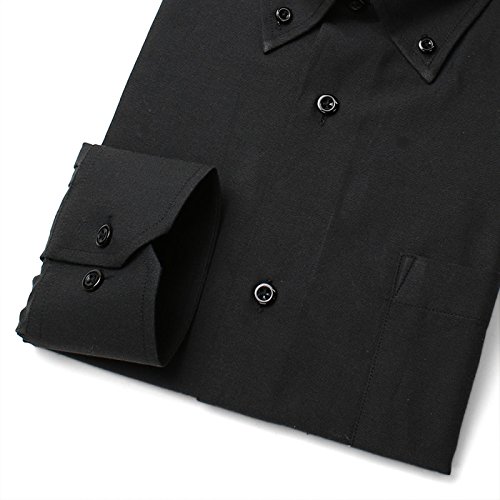 -. Title : オックスフォード ドレスシャツ 長袖 ワイシャツ Yシャツ シャツ メンズ スリム ブラック ボタンダウン DC7007B
