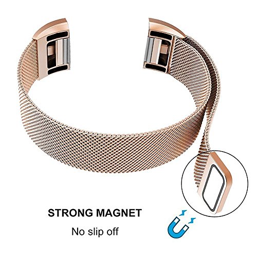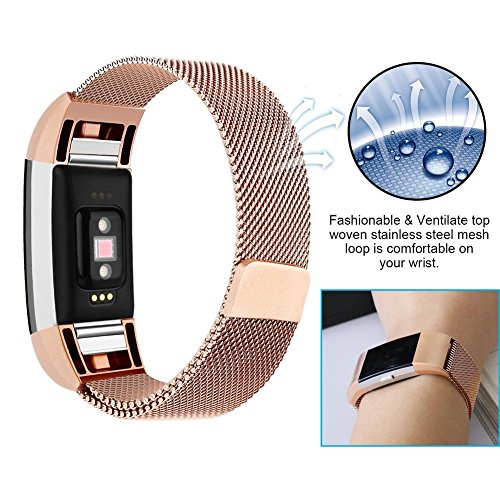 Fitbit Charge 2 Bands, Wristel Stainless Steel Watch Bands Metal Smart Watch Bracelet Strap Milanese Loop with Extra Protector Protective Film