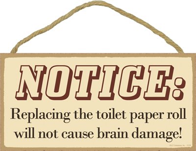 (SJT13135) Notice: Replacing The Toilet Paper Roll Will Not Cause Brain Damage! 5" x 10" Wood Plaque Sign