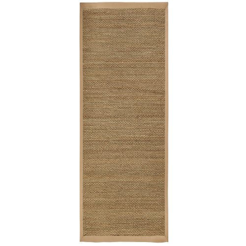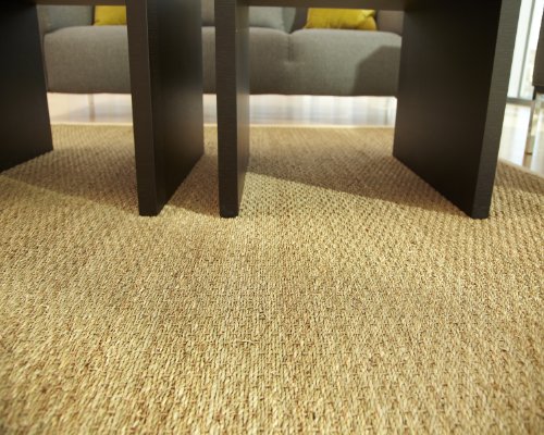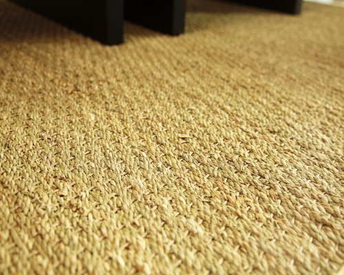 Seagrass is an abundant marine grass with thick, flat and smooth fibers. It exhibits a splendid range of natural color ranging from green to brown--it is never dyed. Its fiber is extraordinary durable and is a perfect fit for high traffic areas. Seagrass is an abundant marine grass with thick, flat and smooth fibers. It exhibits a splendid range of natural color ranging from green to brown—it is never dyed. Its fiber is extraordinary durable and is a perfect fit for high traffic areas. It is naturally water-resistant and does an excellent job repelling stains as well. It has a long and distinguished history as an important and treasured natural material in both furniture and floor coverings. The coloration of natural seagrass a mixture of tan and light brown with a subtle greenish hue. Slight color variations may occur due to the unique, natural qualities of the seagrass. Spot-clean borders with mild dish soap and water solution. Vacuum regularly with suction only--a beater brush is not recommended. Blot liquid spills immediately by pressing a clean, undyed cloth into the spill to absorb as much as possible.Feature