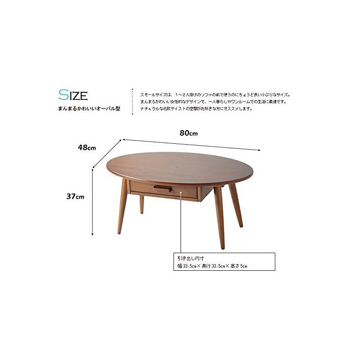 원본상품명: 岩附(IWATSUKI) テ?ブル 木製 引き出し付き 幅80 楕円 ?納 天然木 ロ?テ?ブル センタ?テ?ブル クライス kreis ブラウン IWT-26
