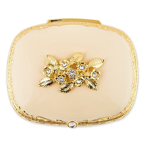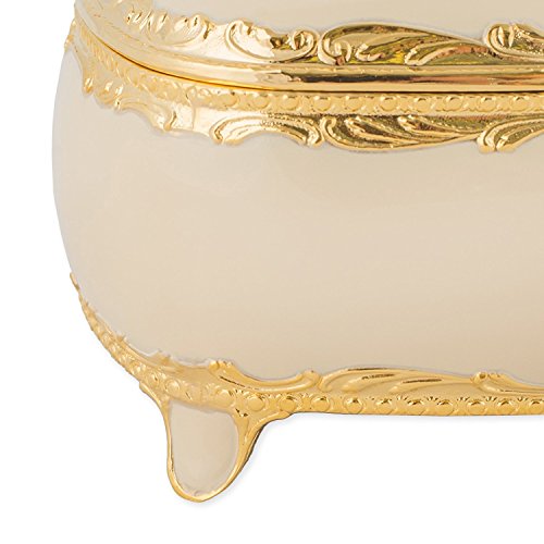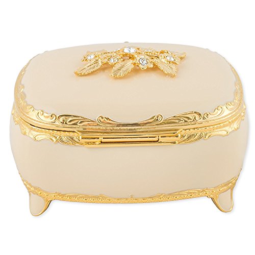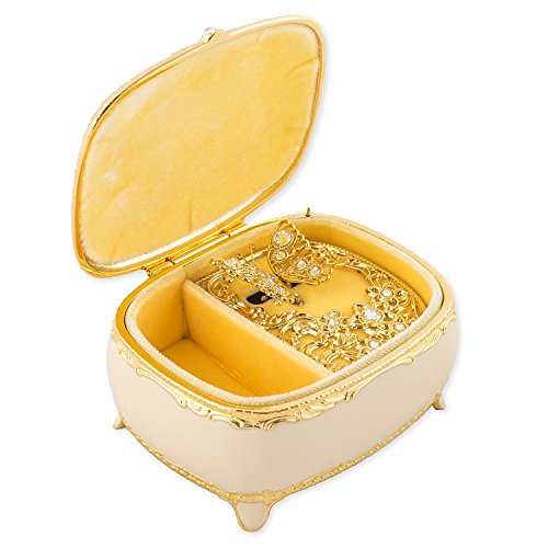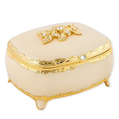 White with Swarovski Crystals and Gold Accents Metal Jewelry Music Box Plays Canon