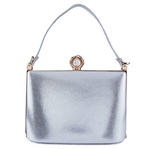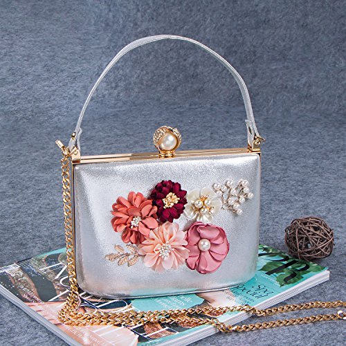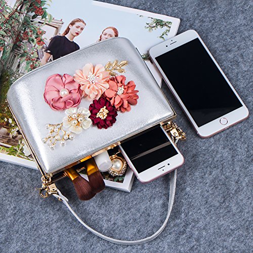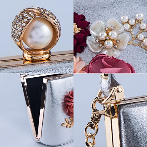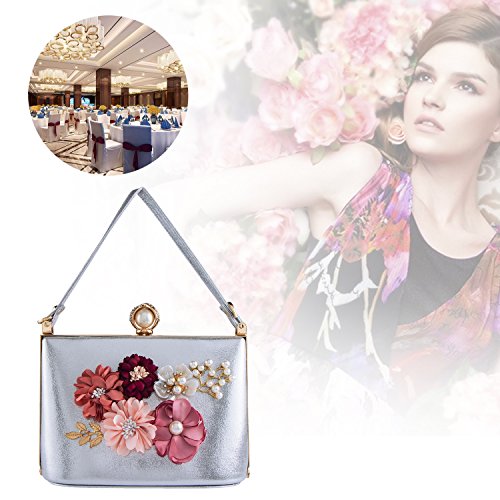 -. Title : Bagood Women's 3D Pearl Flower PU Evening Clutches Purses Handbag for Wedding Bridal Party Silver
