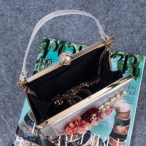 -. Feature : [ Feature ] Pearl Flower design, the surface decorated by the crystals. The exquisite and elegant style made you 100% attracts lots of admiring glances / [ Enough Space ] Size: 19*8.7*14cm ( 7.5*3.4*5.5 inches). It can easily hold your cosmetics, such as makeup brushes and lip sticks, feminine hygiene products, mobile phones, wallets, sunglasses and any other small necessities / [ Two Ways To Carry ] The removable chain-strap for you to choose hold it in hand or on the shoulder. The proper chain length also can be to cross your body / [ Easy To Clean ] It is easy to clean and ordinary water resistant (but please do not soak in the water) / [ Occasion ] Stylish, leisurely design can be used as a daily clutch when you're out of the street and have a vocation. Exquisite, elegant design can be used as evening bag when you attempt wedding party, banquet and special party