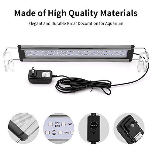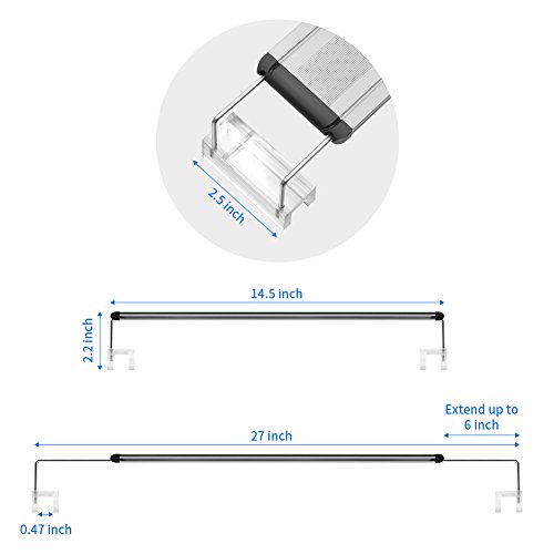 - EXTENDABLE BRACKETS: The LED fish tank light bar is 14.5 inch in dimension, with extendable brackets, it fit for aquarium from 14.5 inch to 23.5 inch.